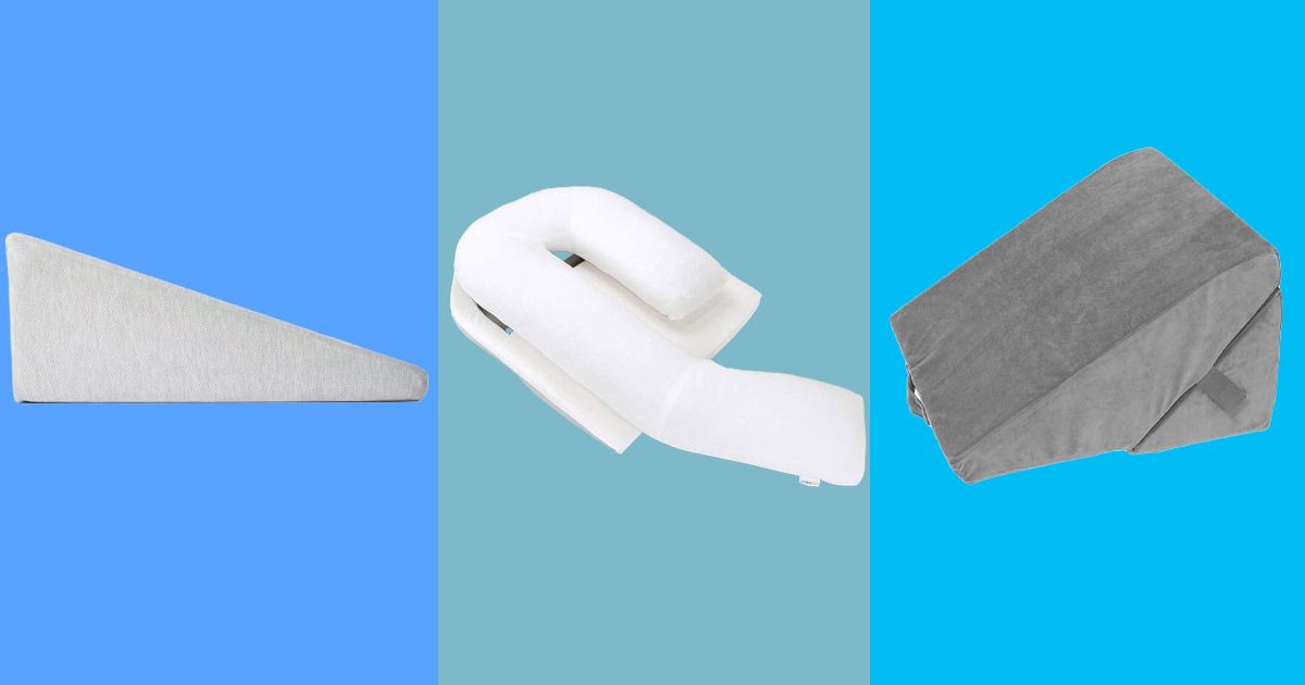 Side-by-side comparison of basic wedge and dual-layer pillows elevating a sleeper's upper body.